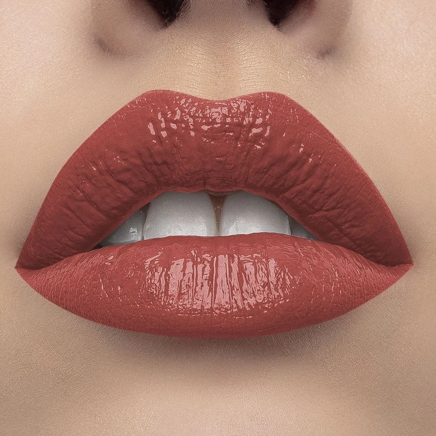 PSYCHE PSYGLOSS può essere applicato su labbra nude per un effetto vinilico e coprente, oppure come topcoat su tutti i prodotti labba della linea MULAC COSMETICS.